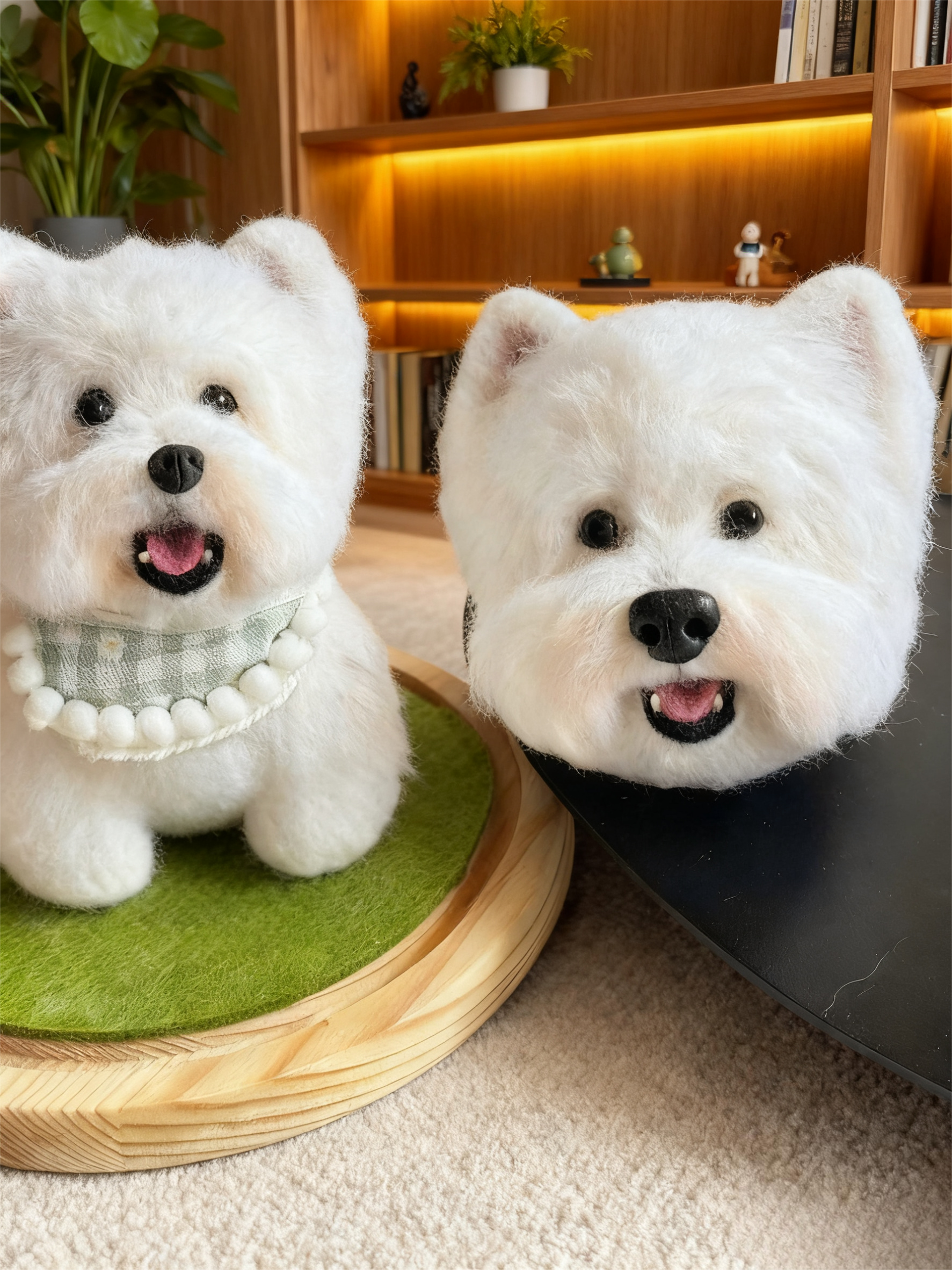 Each wool pet is individually customized to capture your pet’s unique features, such as an open mouth, tongue out, birthmarks, spots, etc.—truly a one-of-a-kind artwork.